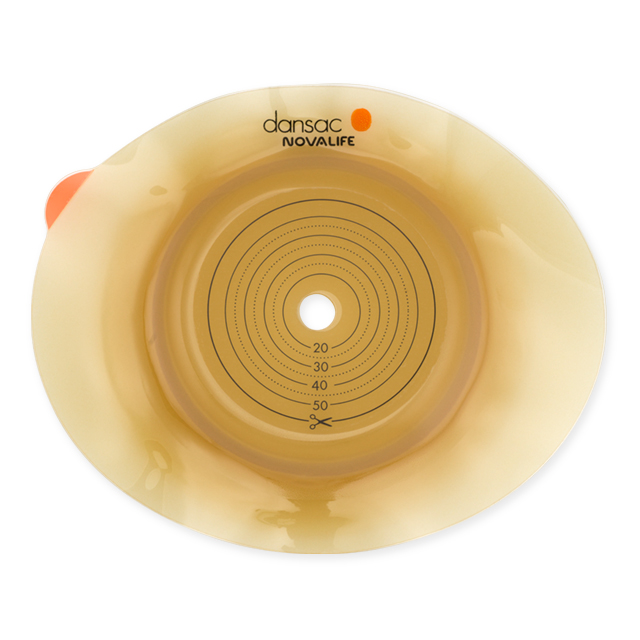 The NovaLife™ 2 Convex Flange is an oval-shaped barrier that helps protect the skin and is designed for easy application and secure adhesion. The convex shape of the wafer applies pressure around the stoma to help push the stoma into the pouch.